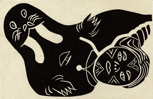 Maggie Cain, ᐁᕕᕐᓗ ᐊᕐᓇᓗ [Woman and walrus] (detail), 2017, print. © Avataq Cultural Institute, AV.2019.138, Marie-Christine Couture, 2020.