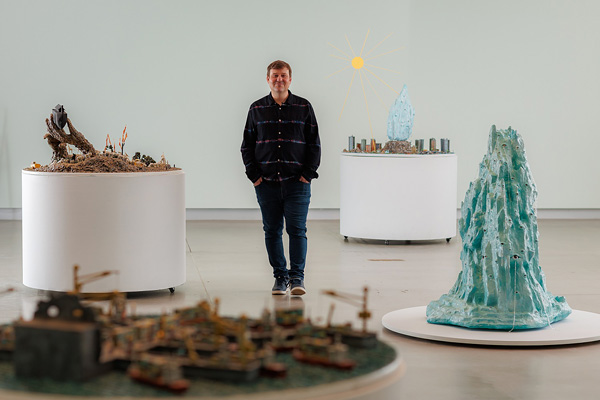 Jude Griebel inside the Illuminated Collapse exhibition on now at PAMA