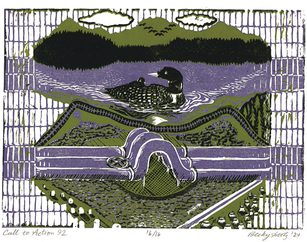 Becky Katz, Call to Action #92, 2024, linocut reduction print.