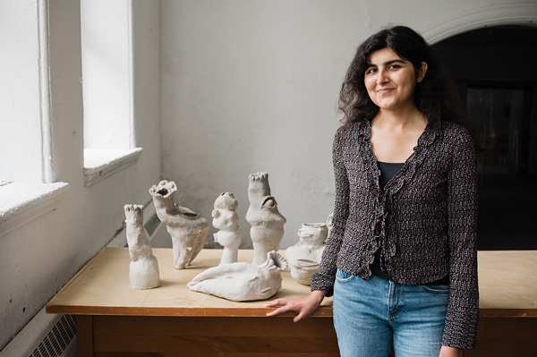 1. Iman Datoo in her Kingston studio with sculptures, 2025. Photo: Liz Cooper