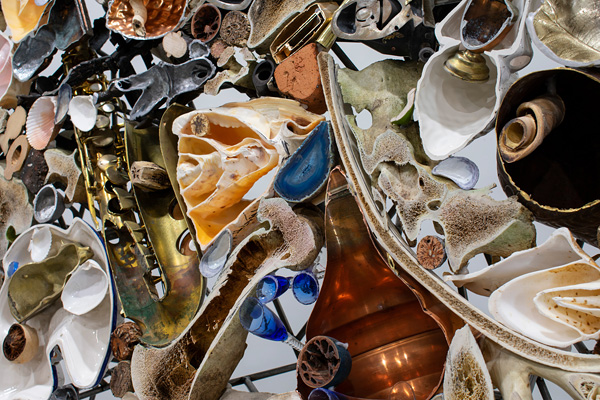 2. Nicholas Crombach, Cross section I (detail), 2024. Found objects and materials, steel, epoxy, construction adhesive. Courtesy of the artist.