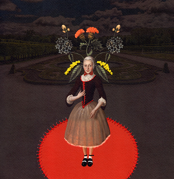 Daria Beer is a collage artist who utilizes both digital and analog techniques. Her work, inspired by her travels, centers on women and nature. By recontextualizing found images, Daria intuitively creates new narratives. In her recent work, she has been using her mother’s embroidery floss, one of the few items that her family took with them when fleeing Poland in the 1980s.
