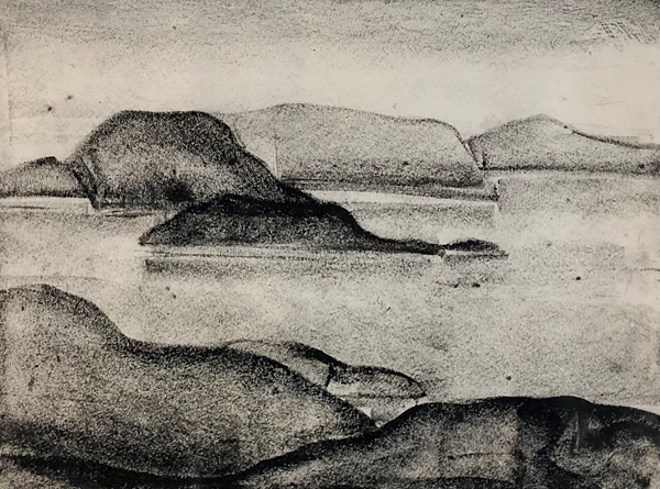 Born on Cedar Island in Orillia, Wood attended the Ontario College of Art in Toronto (today the Ontario College of Art and Design University) from 1921-1926. Upon graduation, Wood started her lifelong love affair with the Northern Ontario landscape as muse for her artistic practice. Returning to the Georgian Bay area summer after summer, Wood would sketch the rocks and trees of this landscape, both as preparatory drawings for her sculptures, and later, during the depression of the 1930s, as artworks that could be produced and exhibited more readily than sculptures. The landscape sketches included in this exhibition are representative of the nearly 100 sketches which she drew in the field.