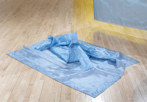 Rihab Essayh, Livin’ in ruins of a palace within my dreams (installation detail), 2024. Organza and crinoline, 12 x 144 x 96 in. Image courtesy of Bowling Green State University Fine Art.