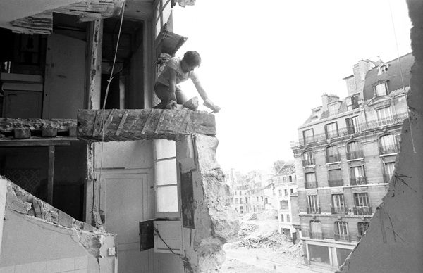 Gordon Matta-Clark, Making of Conical Intersect, 1975, Courtesy of the Estate of Gordon Matta-Clark and David Zwirner Gallery.