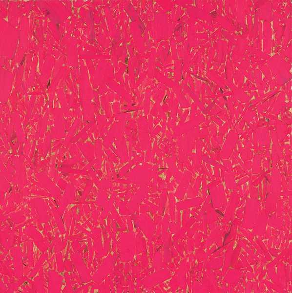Garry Neill Kennedy, Eczema, from the series Six Pink Paintings, 1994. Fluorescent Liquitex paint on chipboard, 78.7 × 78.9 cm. Collection of Dalhousie Art Gallery. Gift of the artist, 2010.