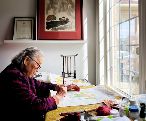 Since taking up painting more than 20 years ago, following her retirement as a geologist, Zhao has completed over 300 works. Her art traces a global map of lived experience, spanning Beijing and Leshan to New York, New Jersey, Toronto, and ultimately, Aurora.