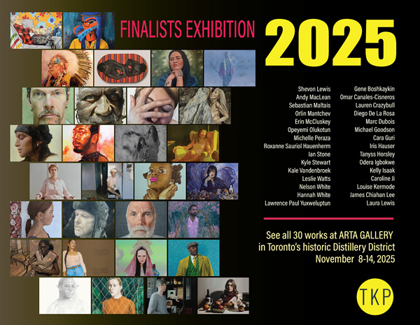 The 2025 Kingston Prize Exhibition of the works of the 30 finalists will be held in Toronto’s historic Distillery District starting Saturday, November 8 and running through Friday, November 14, at Arta Gallery.