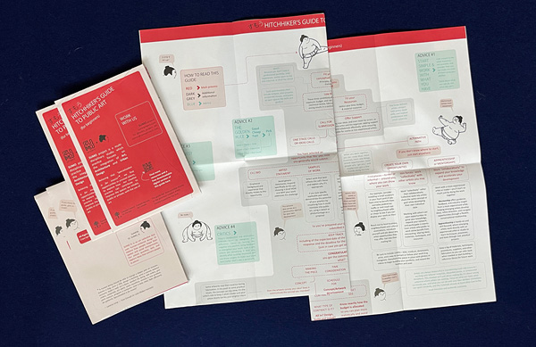 The SUMO Hitchhiker’s Guide to Public Art (for beginners) is a concise, visual reference guide providing a clear overview of the public art process and its steps, structured around a main path, supporting information, and practical advice to help novice artists navigate the system—allowing artists to orient themselves while accessing deeper layers of knowledge as needed. While it may appear complex, it is designed to be intuitive and accessible.