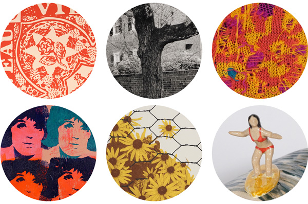 All images are details from larger works. Top row (left to right): Rémi Belliveau, One and one half pence, 2024; Thaddeus Holownia, Sweetest little thing, 1999 (Charleston South Carolina), 1999; Greta Grip, SOLID YES mini 2, 2025. Bottom row (left to right): Alexandrya Eaton, Hope, 2025; Suzie Smith, and still the flowers grow, 2024; Shary Boyle, Little Wave, 2024.