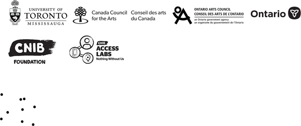 The Blackwood gratefully acknowledges the support of the University of Toronto Mississauga, Canada Council for the Arts, the Ontario Arts Council. Special thanks to CNIB Access Labs for their support with accessibility initiatives.