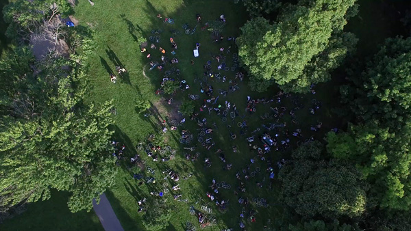 Art Spin bike tours are a roving curatorial project that situates commissioned, site-specific works in unique public spaces throughout the city. Each Art Spin tour gathers a large audience on bicycles to visit the multidisciplinary installations and performances in a one-of-a-kind event. With few details released beforehand, Art Spin tours ask you to trust the curators and allow yourselves to be surprised by both the creative programming and the unusual spaces to which they lead you.