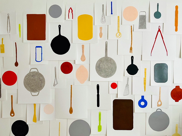 Gather invites you to appreciate the labour, skill, and quiet beauty embedded in everyday kitchen tools. Using the simplest of materials as mediums—Tonia Di Risio reimagines functional objects as art, capturing the essence of time, place, and ritual in the kitchen. Bold lines, tracings, and playful colours transform traditional utensils, encouraging you to see them anew.