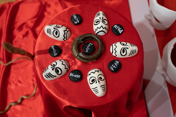 Winsom Winsom, The Masks We Wear (detail), 2018, mixed media installation, Collection of the Agnes Etherington Art Centre, Queen’s University, Purchase, Chancellor Richardson Memorial Fund, 2022