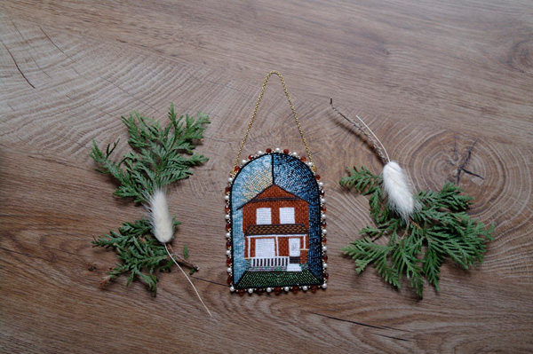 Raechel Wastesicoot, grandma’s house, mixed media: beads (new and vintage), felt, leather, chain, 2023. Courtesy of the artist.