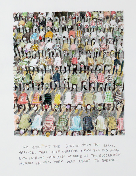 Bill Burns, The Curator and the Law Suit, 2023, drawing. Photo: Bill Burns